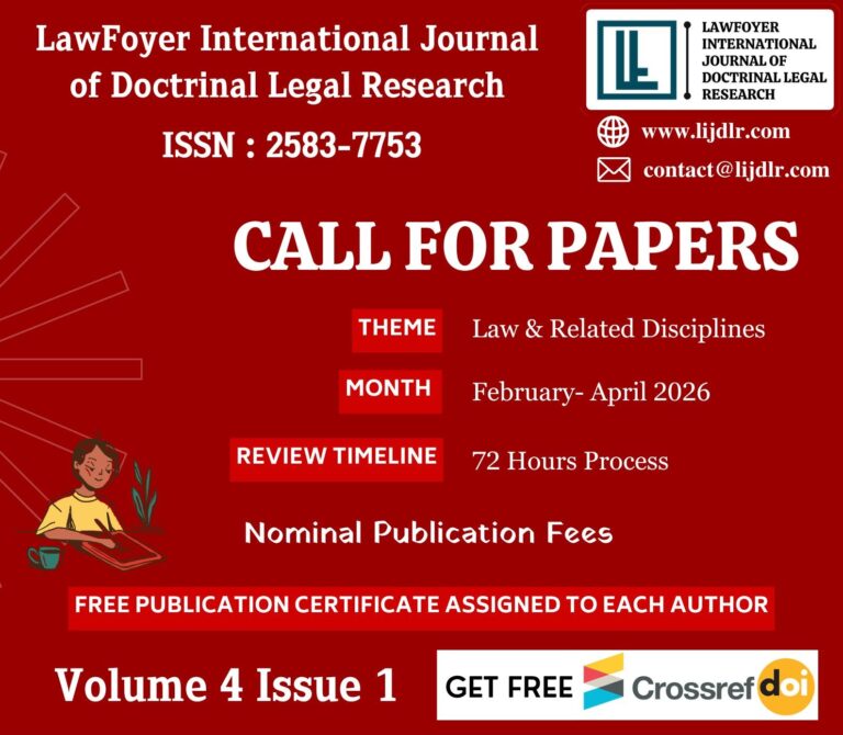 LIJDLR, ISSN Number:- 2583-7753, Impact Factor:- 6.07 is an Open Access, online Quarterly Peer Reviewed International Journal. LawFoyer International Journal of Doctrinal Legal Research Journal invites Research papers, Articles, Book Reviews & Case Commentaries. You can submit your manuscript via Online Submission System. The academic publishing industry is evolving rapidly, and this is no secret. There has been an increase in the number of new editors, reviewers, and publishers, which has resulted in a shift in the standards expected from researchers in all fields.
